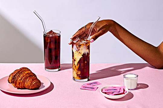Fill a tall glass with ice cubes and add coffee, milk, Sweet€™N Low®, cinnamon, almond extract, and vanilla extract. Stir well to dissolve Sweet€™N Low®. For the whipped cream, in a medium bowl, beat cream and Sweet€™N Low® with a hand mixer until softly whipped. Top coffee with 2 tablespoons whipped cream. Reserve any remaining whipped cream in an airtight container in the refrigerator.