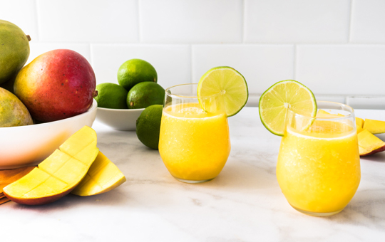 1 750ml bottle dry white wine, such as Pinot Gris, 1 pound frozen mango chunks, 4 packets SweetN Low zero calorie sweetener, ½ cup fresh lime juice, 2 ounces silver rum